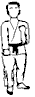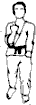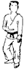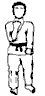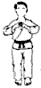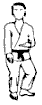 Look left - turn left(90') sliding your left foot over your right while cupping your right fist in your left palm below your belt and slowly rising to your chest