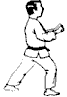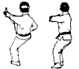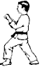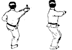 From the same position clench left knife hand into a fist stepping forward with the right foot into a horse stance while executing a right side punch !!!KIAP!!!