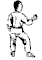 left fist (palm up) back to left hip, move right fist in front of body toward left hip