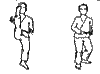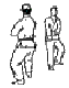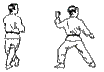 Pivot clockwise on the ball of your left foot, to face the direction of your previous down block, and step forward with you rright foot into a front stance while pulling you right fist in toward your left shoulder while simultaneously executing a left uppercut slowly.