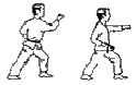 From the same stance execute a right reverse punch followed by a left straight punch (mid-section).