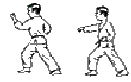 Pivot counter clockwise on the ball of your right foot, swinging your left foot around 270 degrees as simultaneously execute a left down block and a right outside middle block into a left modified front stance (you are turned 45 degrees to the right of you blocks looking over your left shoulder).