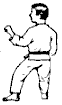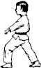 Step left foot back into a right foot back-stance while executing a right arm palm block followed by a left arm reverse middle punch (no kiap)