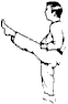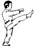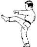 Left foot round house kick - !!KIAP!! - Step right foot back and turn 270' into a right low stance while executing a right down block