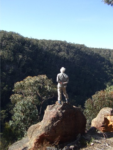 John stands atop a rock overlooking Nattai Gorge from the lookout at the end of the Box Vale Track