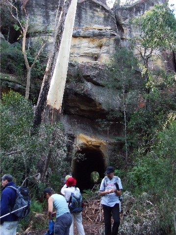Shoalhaven Bushwalkers take a drink break or read the information board after passing through the old railway tunnel