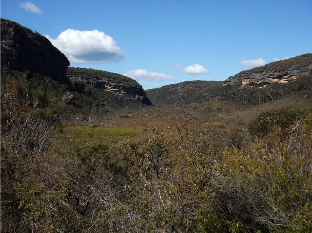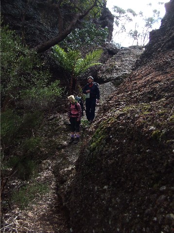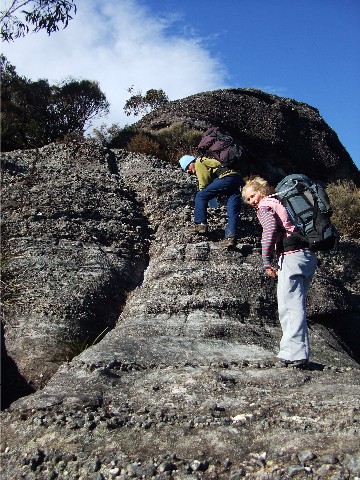 Vicki and Gary make their way up the Conglomerate slope onto the top of Corang Plateau from the Canowie Brook Plain (2012)