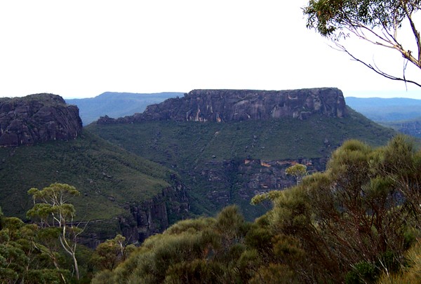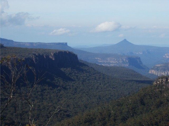 Part of the Budawangs Scenic Rim that includes Mt Owen (Left) and Pidgeonhouse Mountain (Background) taken from the track along Bibbenluke Ridge (Aug 2013)