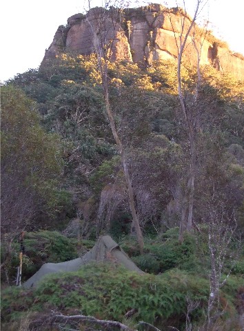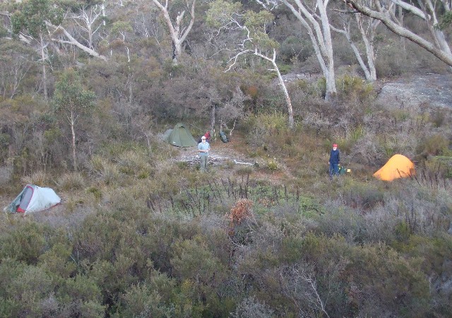 Styles Camp on the bank of Styles Creek beneath the southern tip of Quiltys Mountain (2008)