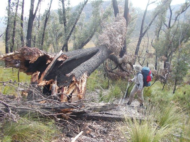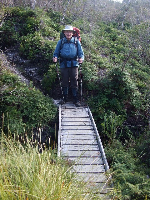 Peter Farrell about to cross a creek bridge near Burrumbeet Brook, not far from the old camping area after ascending past Profile Rock Hill (June 2015)
