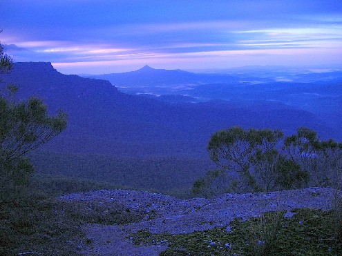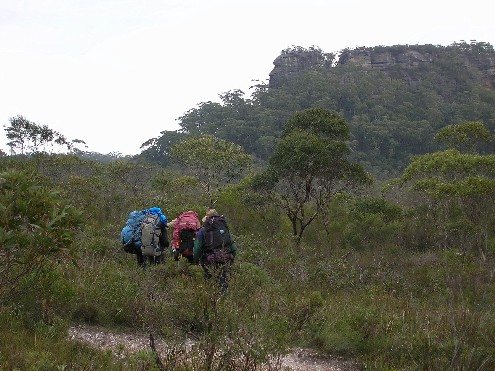 On Saturday 14th May 2005 I joined up with the above Shoalhaven Bushwalkers for two days walking in the Budawangs. I drove to Brett & Karen Davis' place where I would leave my car and travel with Brett & Karen in their car to the Wog Wog trackhead. Sue Bosdyk was also there for the 7.30am deadline. Our drive would take us along the gravel Turpentine Road to the intersection of the Braidwood Road where we would meet up with the rest of our walking companions, then the dreaded drive along the potholed and corrugated Braidwood Road to Nerriga and then along bitumen to the intersection of the Mongarlowe Road and following this gravel road for about 5km to the Wog Wog trackhead. The weather was overcast, but there was little threat of rain. In fact, during the first day we would experience cloudy conditions, followed by breaks of warm sunshine with the occasional cool breeze.