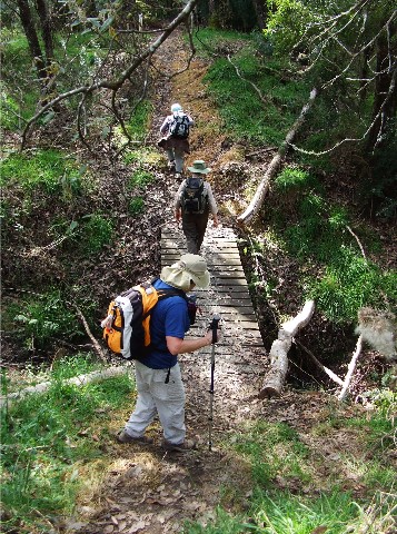 At 12.35pm I announced it was time to head back and the party suggested I head off and set the pace - especially giving me the chance for my feet to warm up (which took little time) most knew they could keep up with me or at least be close behind, especially with my blistered feet. I wasted little time increasing my pace from this morning and my feet felt pretty good. My trekking poles were coming in useful, allowing me much purchase on the uneven or slippery ground, especially on the small steep descents. I had Rupert right behind me, keeping pace for much of the way. By the time we reached the spot where Pam & Kerrie had turned back we deduced that they had exactly 50 minutes head start on us and we hoped they had stopped for a long lunch.
