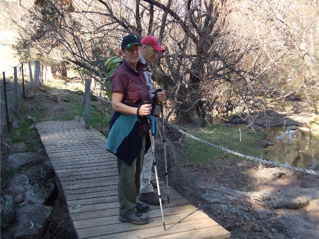 Tony & Bev Simmonds on a boardwalk on the Hume & Hovell Walking Track alongside Burra Creek