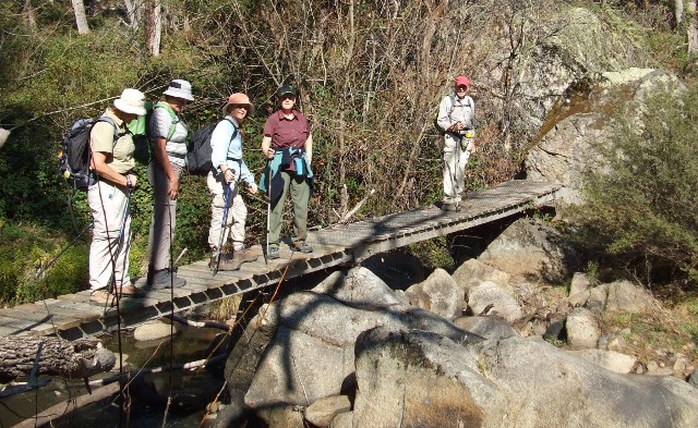 A group of Shoalhaven Bushwalkers on the footbridge crossing Tumbarumba Creek
