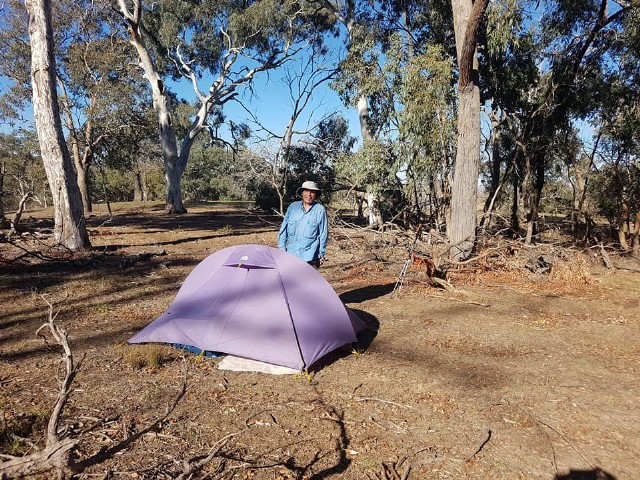 The main problem was locating a spot that wasn't directly situated below dead timber. There were plenty of trees here that provided lovely shade from the afternoon heat, but pitching a tent under eucalypts can often be dangerous due to falling branches. We took several trial sites before choosing our spots and I quickly put up my Macpac Microlight. Like many of the campsites along the HHWT, this ground was rock hard and several tent pegs got bent, luckily they are easily fixed.