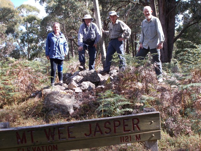 Standing on the summit of Mt Wee Jasper: L-R Julie, Paul, Gerald & Squizz - Photo J Rosier
