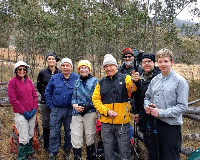October 2017: Hospital Creek Hut in Namadgi National Park. L-R: Steve, Julie, Gerald, Jacqui, Paul and David. Photo: Sean Sunley
