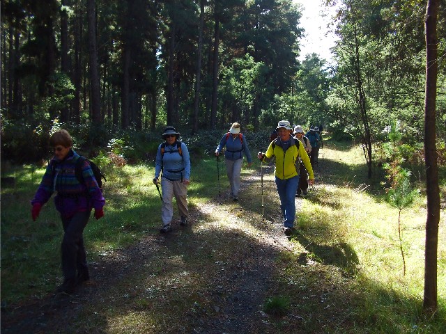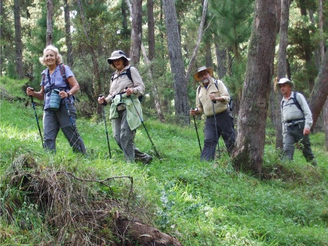 Shoalhaven Bushwalkers making their way through pine forest not long after commencing the walk