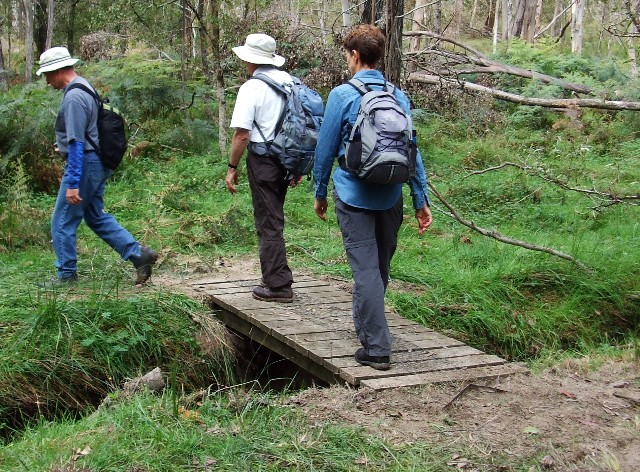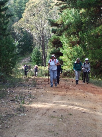 So a nice downhill section was enjoyed and we all located a nice spot to have lunch. I found the base of the trunk of a big pine tree perfect for my needs. It was a short lunch break and we were soon off again, retracing our steps back to the cars and following the same route we had walked in on. Lauri had allowed me to lead off and put on the pace so long as we waited at track intersections. Most of the walk was now downhill and the only person who had kept up with me was Jan. We talked about our previous walks, Jan having joined me in Kosciuszko National Park last November and what each of us had planned for the near future. Before we knew it we were back at Pascoes Dam. All that was left was a 30 minute and 2km walk back to the cars.