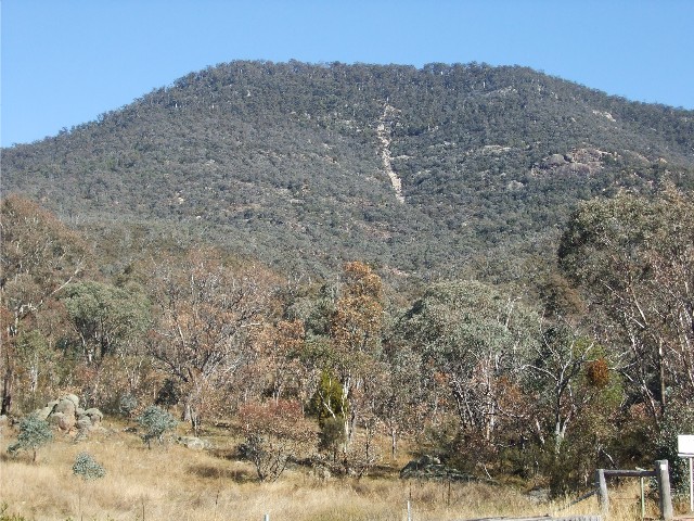 Mt Tennant, with it's unmistakable scar eises up from the Naas Road just south of Canberra