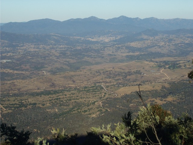 A view of the Tinderries with their twin peaks to the east as seen from the summit of Mt Tennant