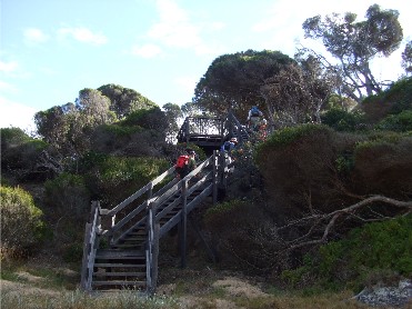 Our group climbing the staircase from Wallagoot Gap back onto the Kangarutha Track