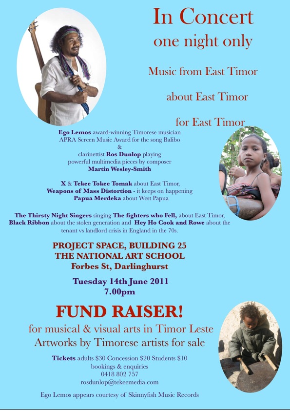 The vocal group I sing in and direct, The Thirsty Night Singers, recently sang at a concert put on by The Kangaroo Valley Remexio Partnership, in honour of Padré David, from Remexio, East Timor. One of the items we sang was The Fighters Who Fell, which started life as a poem written in Portuguese by East Timorese resistance leader (as he was then) Xanana Gusmão. It was translated into English by Agio Pereira and Rob Wesley-Smith then "versified" by Peter Wesley-Smith. I then took it and set it to the melody of East Timorese folk-song Kolele Mai.