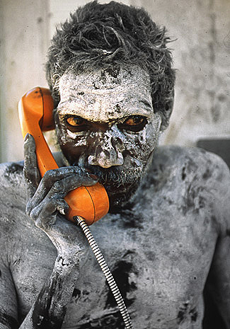 The photograph at right, above, is my favourite Penny Tweedie shot. It's of an Arnhem Land man, Tom Noytuna, encountering a telephone for the first time. Click on the photos for larger versions.