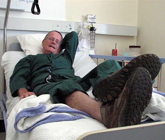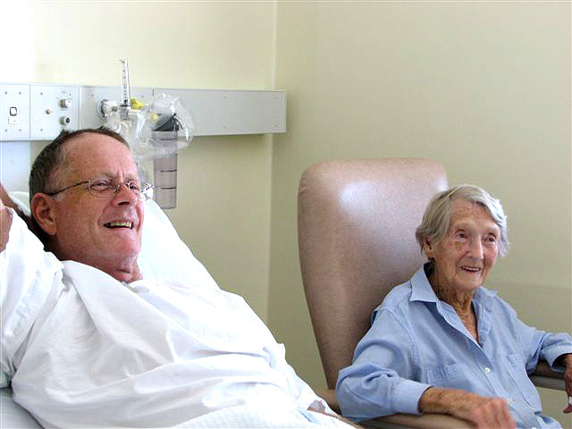 Back from the bush and went in to see Wes at 1pm today. He was looking very dapper and cheerful, sitting in a chair and carrying on conversations with others in the room (Lily was with me and we met up with Cesarina at the desk; and two nurse types of friendly demeanour were in attendance). The conversations mostly had a beginning, a middle and an end. I retold the story of the accident (at his request), which he listened to attentively, asking occasional questions; and we spoke of other things. He still has a shaky memory, but the essential Wes is still there and becoming more concrete as time passes. He looks great - no tubes, his hair is growing over the little scalpings he has had to endure, signs of bruising all but disappeared - and the super optimist within me says he'll be outa there in a week.......