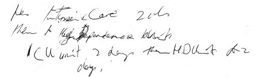 ICU unit 2 days then HDUnit for 2 days.