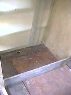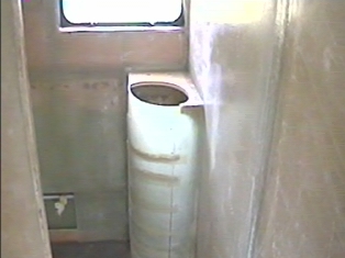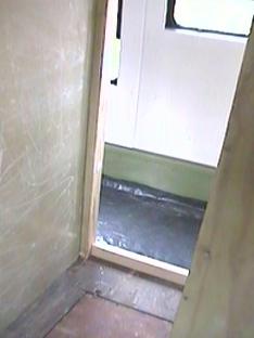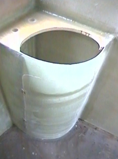 The glass sheets were glued to the wall studs with 'Sikaflex'. The sheets were then joined with strips of fibreglass matt and resin.