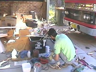 Cleaning the fibreglassing tools. One needs a good supply of acetone, icecream containers and disposable gloves.
