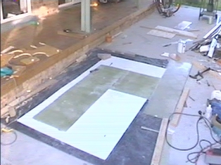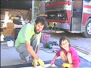 Laying up the fibreglass sheeting to be installed as the walls in the bathrrom.